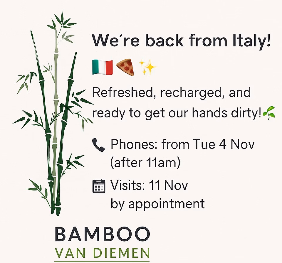 Bamboo Van Diemen is a local, family owned and operated clumping Bamboo nursery. We grow & stock a variety of bamboo plants that are well suited to the local climate. Our catalogue consists of plants that are proven to thrive in our Tassie climate.